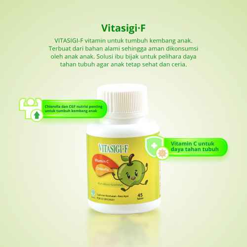 Belanja SekarangVitasigi-F merupakan suplemen yang mengandung vitamin C dan chlorella. Terbuat dari bahan alami sehingga aman dikonsumsi oleh anak-anak. Vitasigi-F melengkapi kebutuhan gizi, memperbaiki jaringan tubuh serta meningkatkan daya tahan tubuh anak-anak.