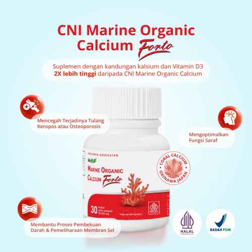 Belanja SekarangWell3 Marine Organic Calcium Forto adalah suplemen dengan kandungan Kalsium dan Vitamin D3 2X lebih tinggi daripada CNI Marine Organic Calcium. Produk ini sangat sesuai untuk mereka yang membutuhkan kalsium dalam jumlah besar seperti ibu hamil dan menyusui serta mereka yang beresiko mengalami osteoporosis.